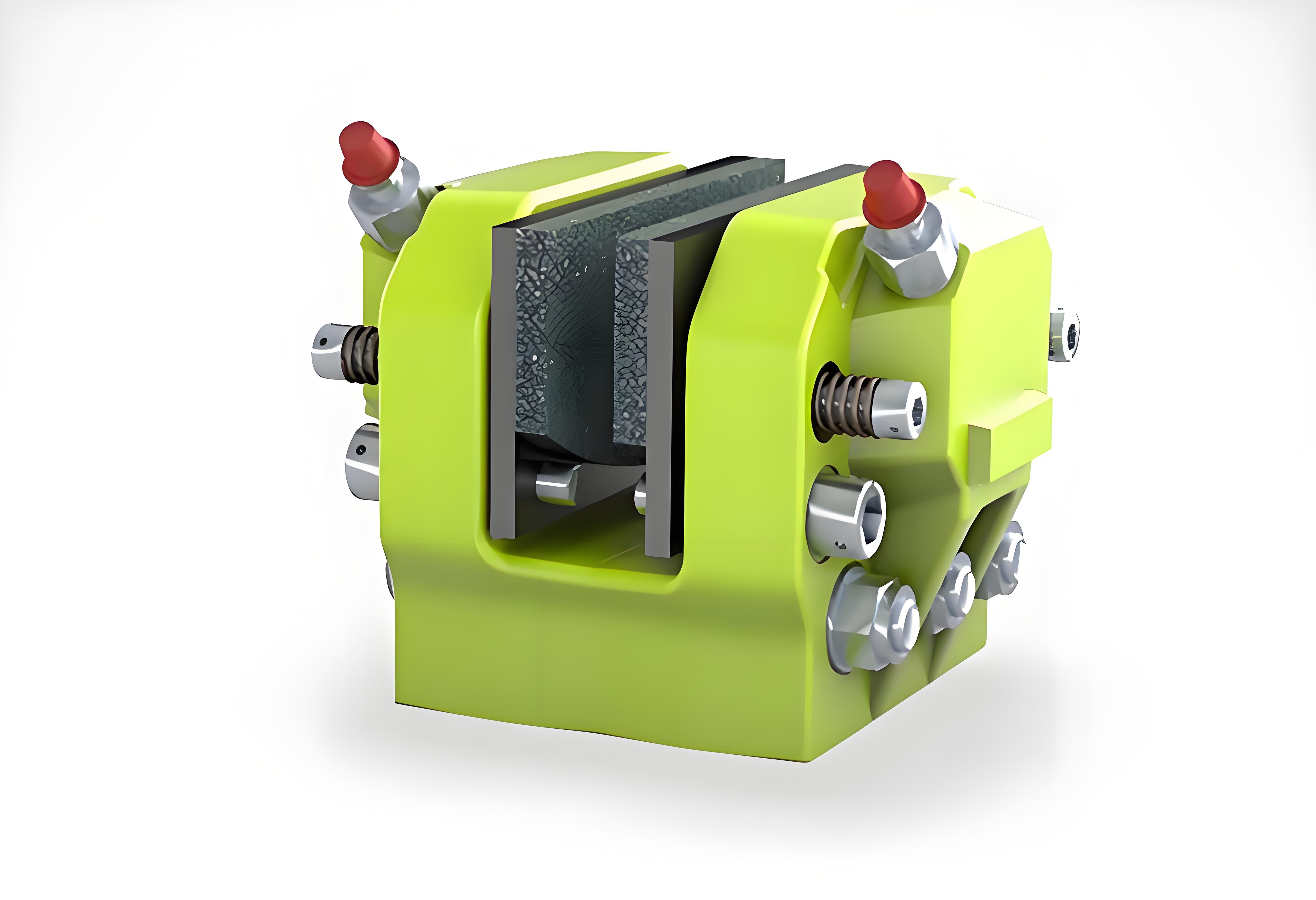 盤式制動(dòng)器SKD35-50-65-80由完全對(duì)稱兩部分組成。制動(dòng)器每一側(cè)設(shè)計(jì)有兩個(gè)導(dǎo)位銷,可以有效的將來(lái)自摩擦片上受到的切向制動(dòng)力傳遞到制動(dòng)器本體和安裝支架上,因此確保制動(dòng)器活塞部分可以不受任何徑向力的影響從而大大延長(zhǎng)制動(dòng)器整體的可靠性和使用壽命。當(dāng)加載壓力釋放時(shí),制動(dòng)器每一對(duì)稱部分的兩個(gè)復(fù)位彈簧將摩擦片脫開制動(dòng)盤并復(fù)位。摩擦片的磨損可通過(guò)增加活塞行程進(jìn)行自動(dòng)補(bǔ)償。SKD系列工作制動(dòng)器需對(duì)應(yīng)標(biāo)準(zhǔn)厚度的制動(dòng)盤,非標(biāo)準(zhǔn)厚度可通過(guò)選擇相應(yīng)的墊片。SKD適用于任何需要?jiǎng)討B(tài)制動(dòng)、靜態(tài)鎖