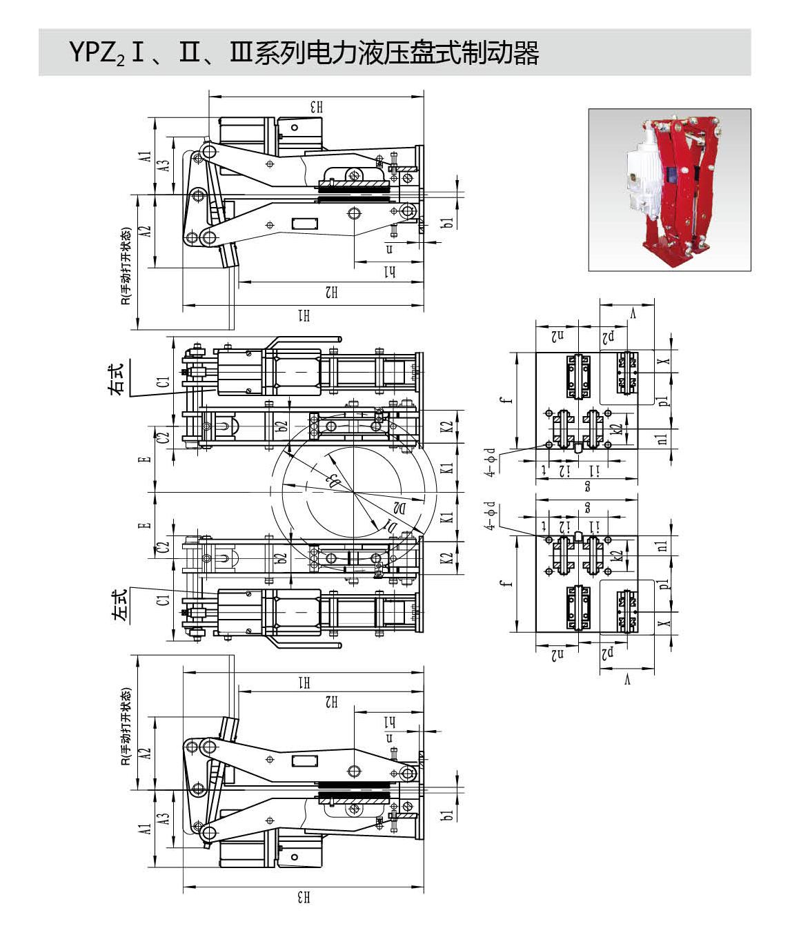 YPZ2ⅠⅡⅢ系列電力液壓盤(pán)式制動(dòng)器是一種高性能、多功能的先進(jìn)產(chǎn)品。由于其具有瓦塊退距自動(dòng)均等,襯墊磨損自動(dòng)補(bǔ)償?shù)认冗M(jìn)功能,使用過(guò)程中維護(hù)非常便捷。通過(guò)增設(shè)各種限位開(kāi)關(guān),可給主機(jī)PLC提供所需要的聯(lián)鎖保護(hù)信號(hào)。非常適合各種現(xiàn)代的大型專(zhuān)用裝卸機(jī)械、起重運(yùn)輸機(jī)械、冶金設(shè)備、礦山設(shè)備及工程機(jī)械中各種機(jī)構(gòu)的減速和維持(停車(chē))制動(dòng)。