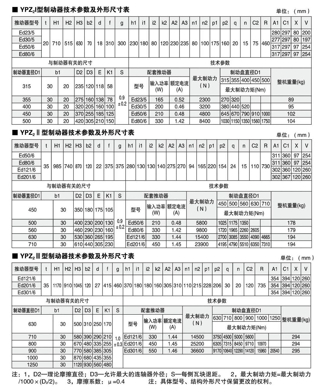 應(yīng)用:YPZ2ⅠⅡⅢ系列電力液壓盤(pán)式制動(dòng)器是一種高性能、多功能的先進(jìn)產(chǎn)品。由于其具有瓦塊退距自動(dòng)均等,襯墊磨損自動(dòng)補(bǔ)償?shù)认冗M(jìn)功能,使用過(guò)程中維護(hù)非常便捷。通過(guò)增設(shè)各種限位開(kāi)關(guān),可給主機(jī)PLC提供所需要的聯(lián)鎖保護(hù)信號(hào)。非常適合各種現(xiàn)代的大型專(zhuān)用裝卸機(jī)械、起重運(yùn)輸機(jī)械、冶金設(shè)備、礦山設(shè)備及工程機(jī)械中各種機(jī)構(gòu)的減速和維持(停車(chē))制動(dòng)。符合標(biāo)準(zhǔn):電力液壓盤(pán)式制動(dòng)器符合DIN15435標(biāo)準(zhǔn)和JB/T7020-2006標(biāo)準(zhǔn)。配套符合DIN15430標(biāo)準(zhǔn)的Ed系列推動(dòng)器。主要特點(diǎn):▲ 聯(lián)鎖